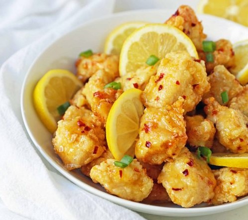 Boneless sliced chicken cooked with saucy lemon & capsicum